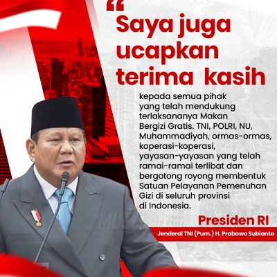 Presiden RI Jenderal TNI (Purn) H. Prabowo Subianto Ucapkan Terima Kasih atas Dukungan Program Makan Bergizi Gratis