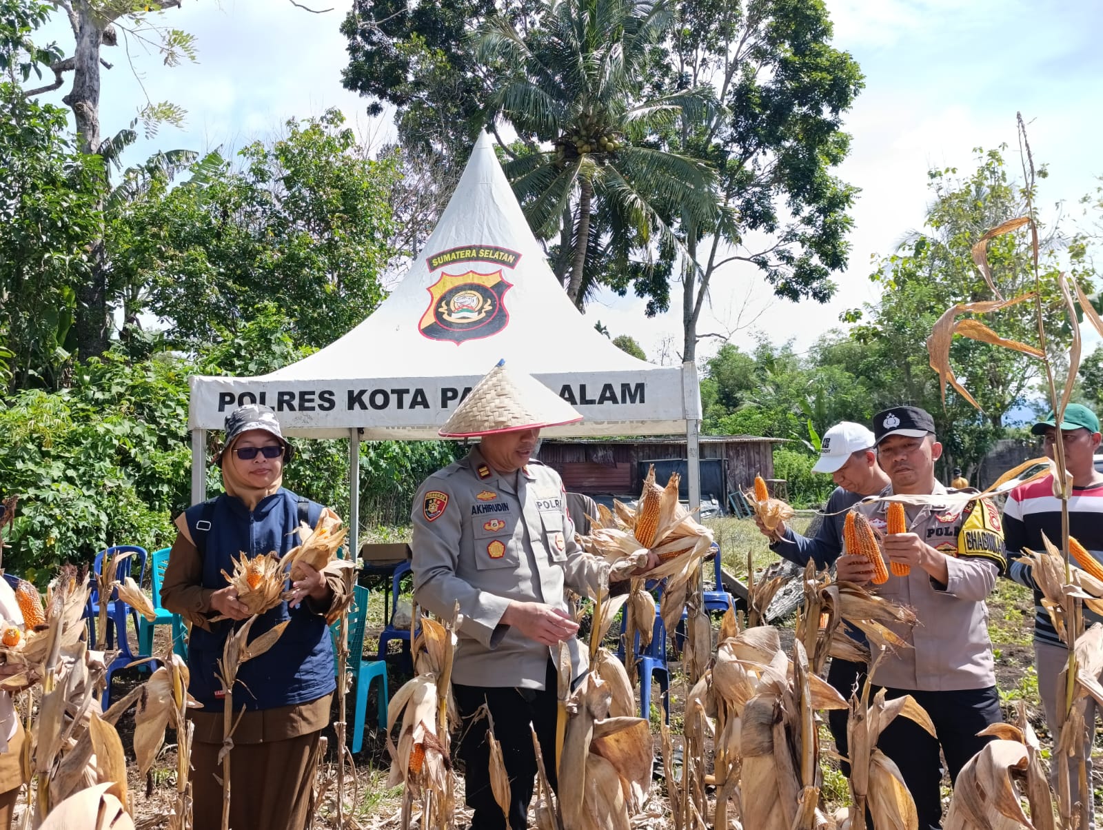 Kapolsek Pagar Alam Utara IPTU Akhirudin, S.H. memimpin langsung kegiatan bersama Lurah Kuripan Babas, Jimmy Erwan, S.E., serta perwakilan dari Bulog Pagar Alam. Monitoring dilakukan sekaligus panen jagung pakan ayam di lahan seluas 500 meter persegi.