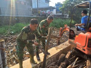 Dalam rangka menjaga kebersihan lingkungan sekaligus mengantisipasi penyumbatan aliran sungai, Koramil 05/Sawangan Kodim 0508/Depok bersama Forkopimda menggelar aksi gotong royong membersihkan Kali Pesanggrahan, Jumat (22/8/2025).