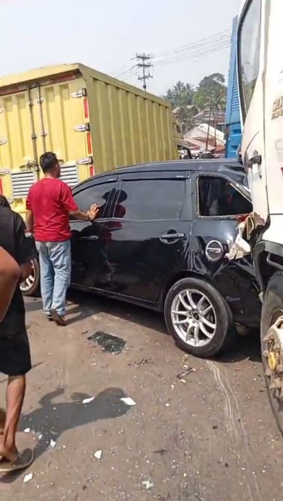 Telah terjadi kecelakaan lalu lintas (laka lantas) tabrakan beruntun yang melibatkan enam unit kendaraan di Jalan Pamuruyan, Kecamatan Cibadak, Kabupaten Sukabumi, Jawa Barat, pada Selasa, (7/10/2025) siang.